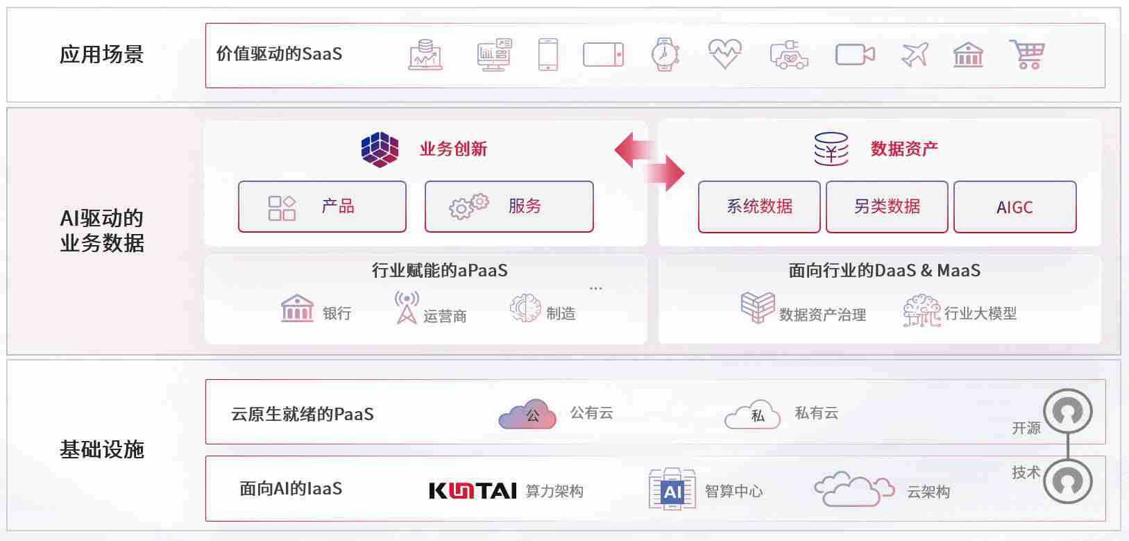 数字时代,,,,围绕企业数字化转型的关键要素,,,Z6尊龙时凯数码开创性的提出数云融合战略和技术体系框架,,着力在云原生、、、、数字原生、、、、AI原生和信创产业上架构产品和服务能力,,为处在不同数字化转型阶段的快消零售、、、汽车、、金融、、医疗、、政企、、、教育、、、运营商等行业客户提供泛在的敏捷IT能力和融合的数据驱动能力,,,,构建跨界融合创新的数字业务场景和新业务模式,,,,助力企业级客户建立面向未来的核心能力和竞争优势,,,,全面推动社会的数字化、、、、智能化转型升级。。。。